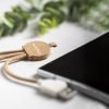 Doğal mantardan yapılmış ve buğday samanından aksesuarlara sahip Nature line USB şarj kablosu, doğal hammaddelerin kullanımını teşvik eder ve kirletici emisyonları azaltır. USB, C tipi (giriş ve çıkış) ve çift mikro USB-Lightning bağlantısı ile. Markalama için asma aksesuarı ve düz alan. Eko tasarımlı, bireysel, kendinden kapanan bir çanta içinde sunulur.